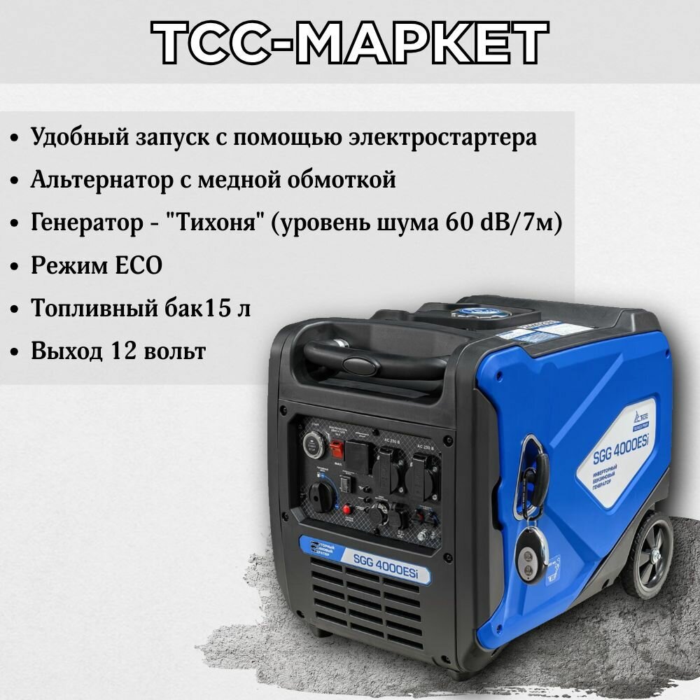 Бензогенератор инверторный SGG 4000ESi в шумопоглащающем кожухе, с