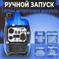 инверторный генератор, Автоматическая стабилизация напряжения, Автоматическое отключение при недостаточном уровне масла, Безопасная остановка, Датчик уровня масла, Защита от перегрева, Защита от перегрузок