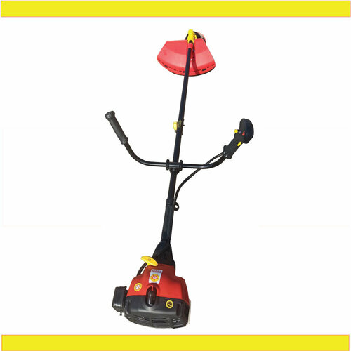 суперлегкая форсированная мотокоса! Форсированный эко-двигатель с половиной коленвала и дожигом топлива в катализаторе, 2 поршневых кольца. Объем двигателя 30мл, мощность - 1000 ватт. Вес снижен - 6,4 кг, в комплекте - железный нож и струнная головка. Прямая разъемная штанга с гибкими валами привода (стыковочный узел кликер), регулируемая по росту рукоятка в форме велосипедной рукоятки "U", редуктор, широкий щиток дефлектора травы, выключатель вынесен на правую ручку — все под рукой. Захват покоса леской/4-лепестковым ножом - 43/25 см. разъемная штанга, облегченный запуск!