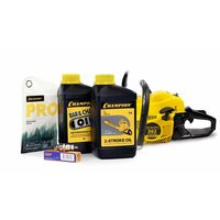 | Комплект поставки | Бензопила; Пильная шина; Цепь; Чехол на шину, Свечной ключ; Отвертка для настройки карбюратора; Мерная емкость, Масло цепное 1л, Масло 2х тактное 1л Запасная цепь Дополнительная свеча Инструкция; Упаковка. |