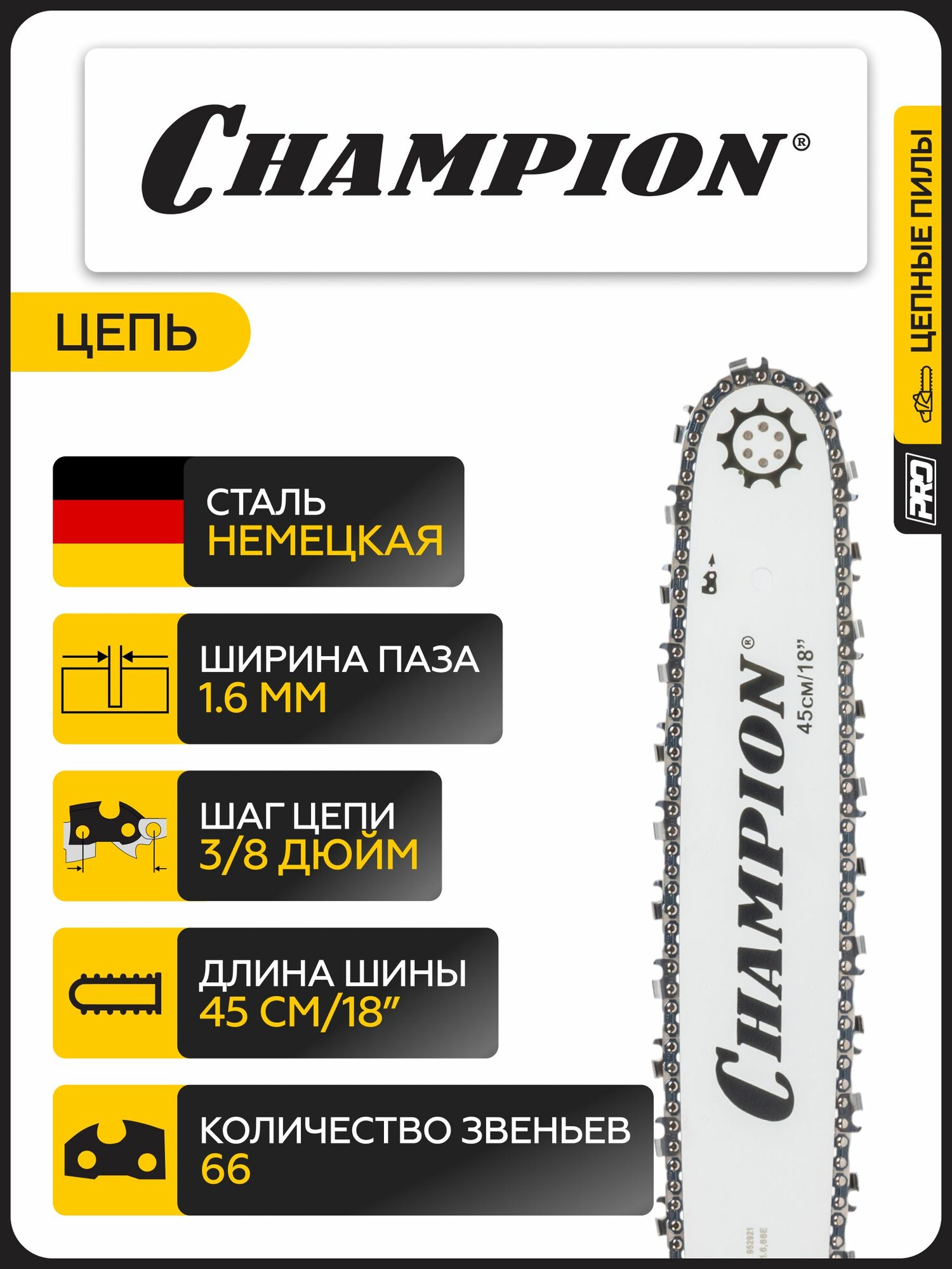 Технические характеристики: Мощность двигателя, (кВт/ л.с) - 3,6/ 4,9; Вес, без шины и цепи с пустыми баками, (кг) - 6,6; Объем двигателя, (см3) - 72,2; Объем топливного бака, (л) - 0,68; Удельный расход топлива, не более, г/кВт час - 620; Объем масляного бака, (л) - 0,36; Длина шины, (дюйм/ см) - 18/ 45; Шаг пильной цепи, (дюймы) - 3/8; Ширина паза пильной шины, мм - 1,6; Количество звеньев цепи, (шт.) - 66; Максимальные обороты без нагрузки, (об/ мин) - 13200; Обороты холостого хода, (об/ мин) - 2500; Уровень вибрации передней/задней рукоятки, (м/с2) - 5,2/ 7,1; Уровень мощности звука, (дБ) - 113.