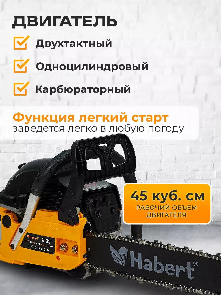 Купить Бензопила Habert HN-4515 2100ВТ 2,85л. с. длина шины 40см. с доставкой по всей России. Бензопила Habert HN-4515 2100ВТ 2,85л. с. длина шины 40см.: сравнение цен, характеристики, фото, актуальное наличие и цены.