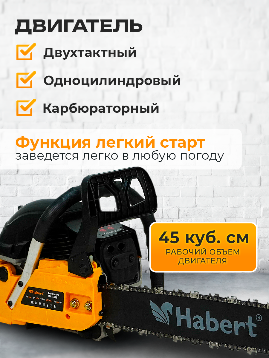 Купить Бензопила Habert HN-4518 2100ВТ 2,85л. с. длина шины 45см. с доставкой по всей России. Бензопила Habert HN-4518 2100ВТ 2,85л. с. длина шины 45см.: сравнение цен, характеристики, фото, актуальное наличие и цены.