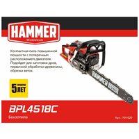 Бензопила Hammer BPL4518C 2кВт/2,7лс 45см3 шина 18″цепь 0,325″-1,5мм-72 6кг: сравнение цен, характеристики, фото, актуальное наличие и цены.