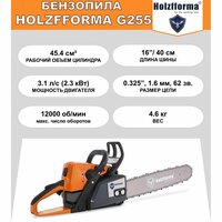 Бензопила Holzfforma G255 (45.4 куб. см, 3.1 л. с, 16′, 0.325″, 1.6 мм, 62 звена): сравнение цен, характеристики, фото, актуальное наличие и цены.