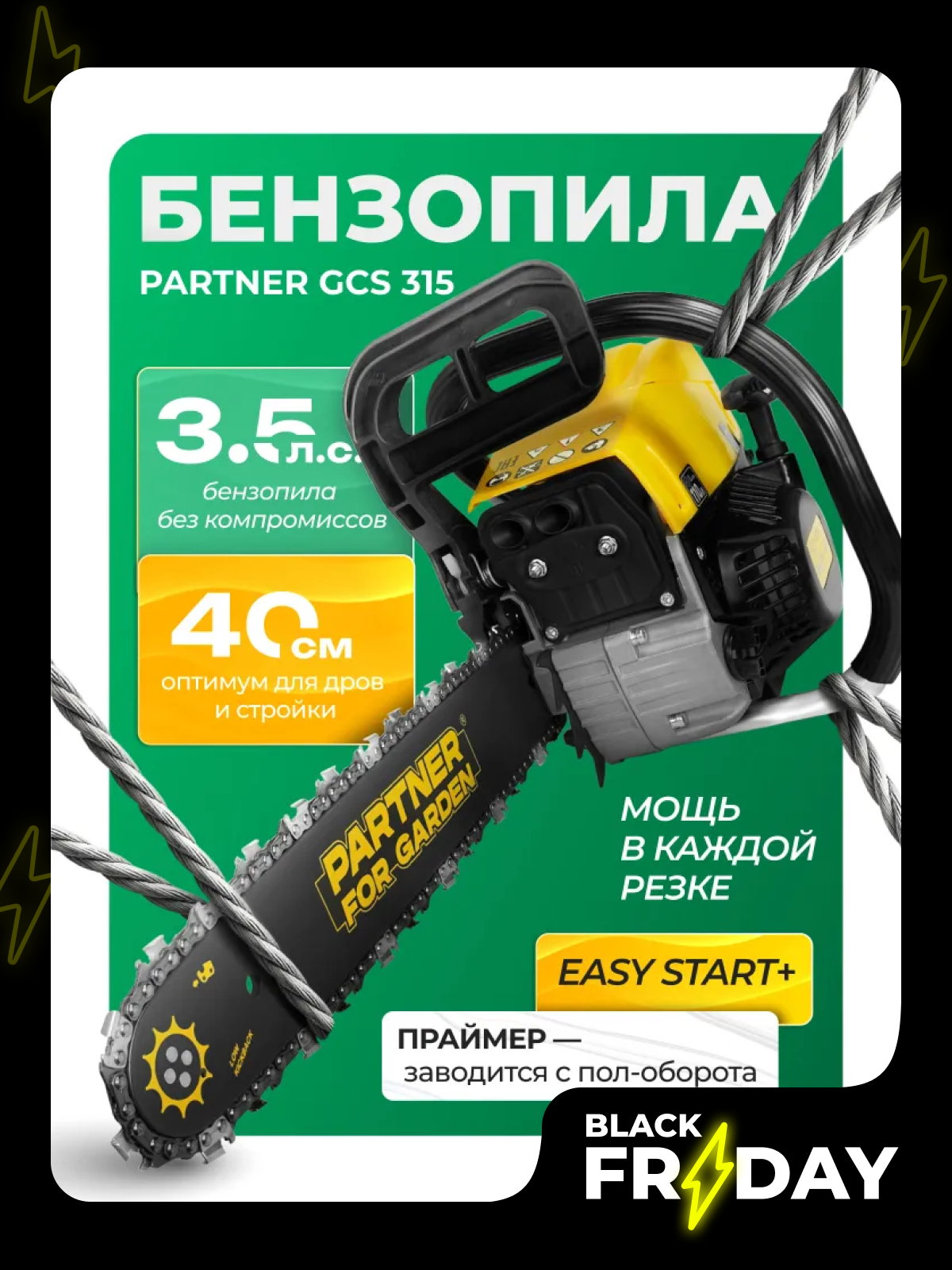 Купить Бензопила «Partner for Garden» GCS 315, тормоз цепи, блокировка кнопки включения с доставкой по всей России.