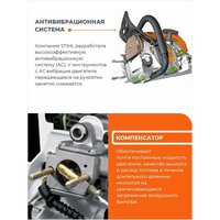| Особенности конструкции | антивибрационная система, бесключевая замена оснастки, регулировка натяжения цепи без инструмента |