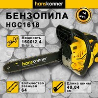 Купить Бензопила цепная бензиновая Hanskonner HGC1618 1600 вт, 2.4 л. с, шина 400 мм с доставкой по всей России.