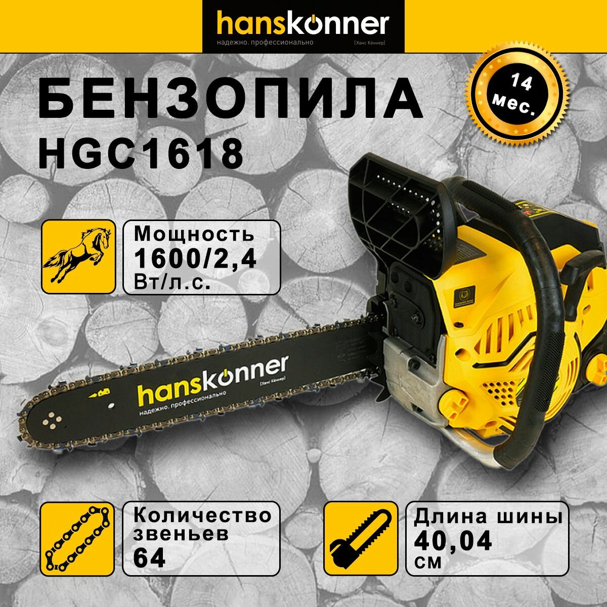 Бензопила цепная бензиновая Hanskonner HGC1618 1600 вт, 2.4 л. с, шина 400 мм: сравнение цен, характеристики, фото, актуальное наличие и цены.