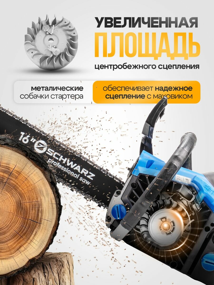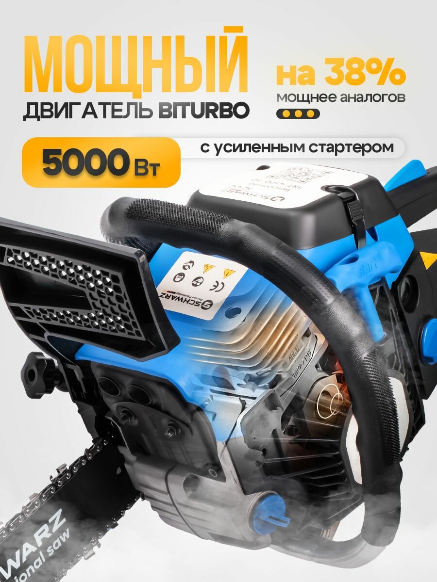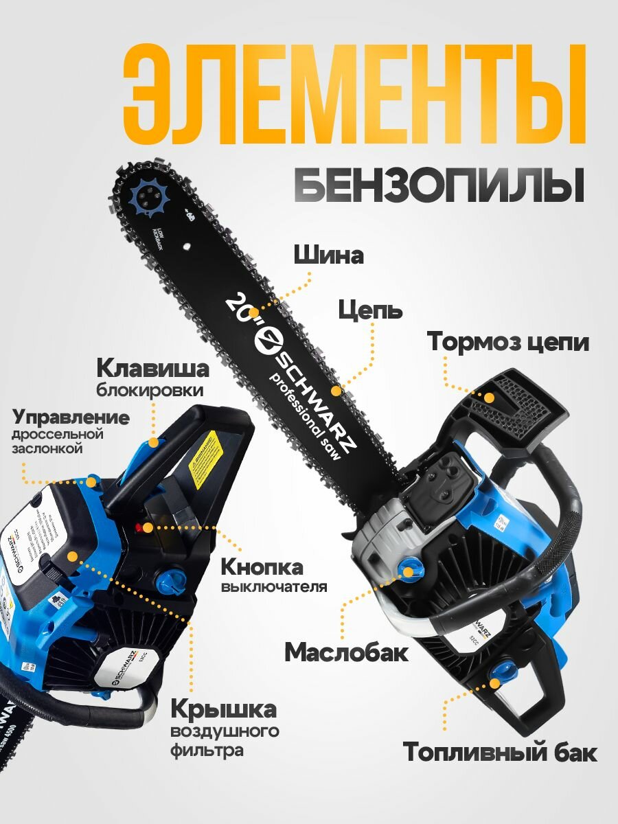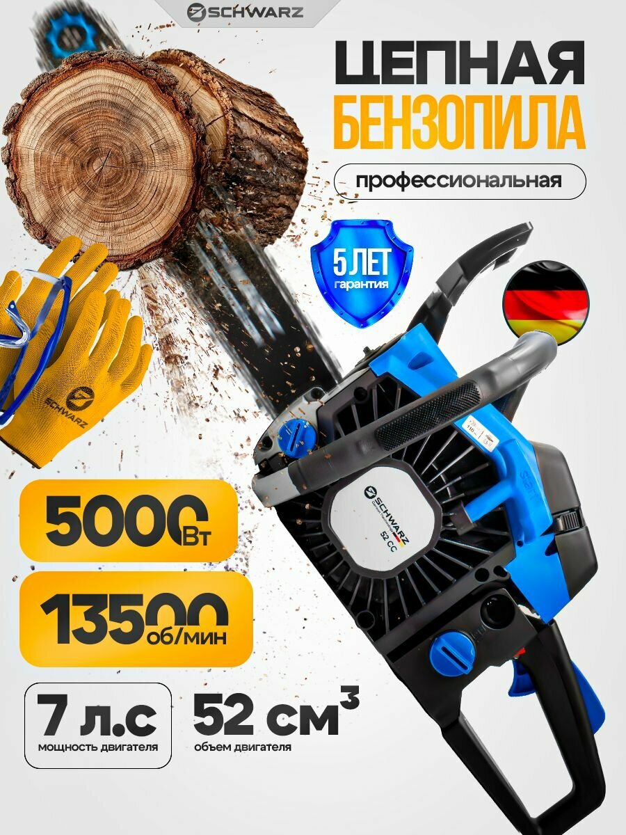 Купить Бензопила цепная бензиновая SCHWARZ (52 см3, 7 л. с, 5 кВт, 13500 об/мин) с доставкой по всей России. Бензопила цепная бензиновая SCHWARZ (52 см3, 7 л. с, 5 кВт, 13500 об/мин): сравнение цен, характеристики, фото, актуальное наличие и цены.
