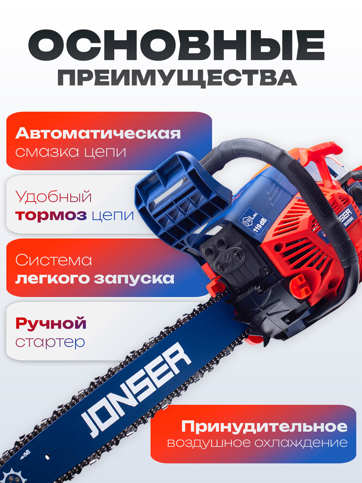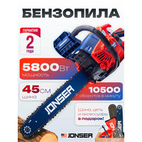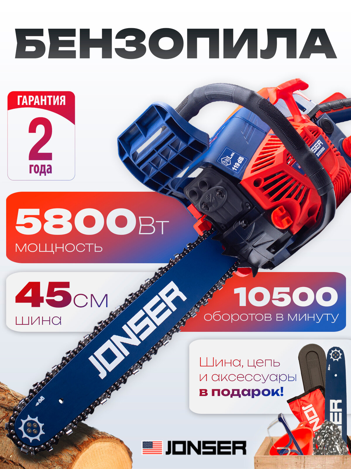 Бензопила цепная JONSER BS-5800 шина 45 см, 5.8 кВт 10500 об/мин, пила бензиновая по дереву, для дачи и сада, заготовки дров: сравнение цен, характеристики, фото, актуальное наличие и цены.