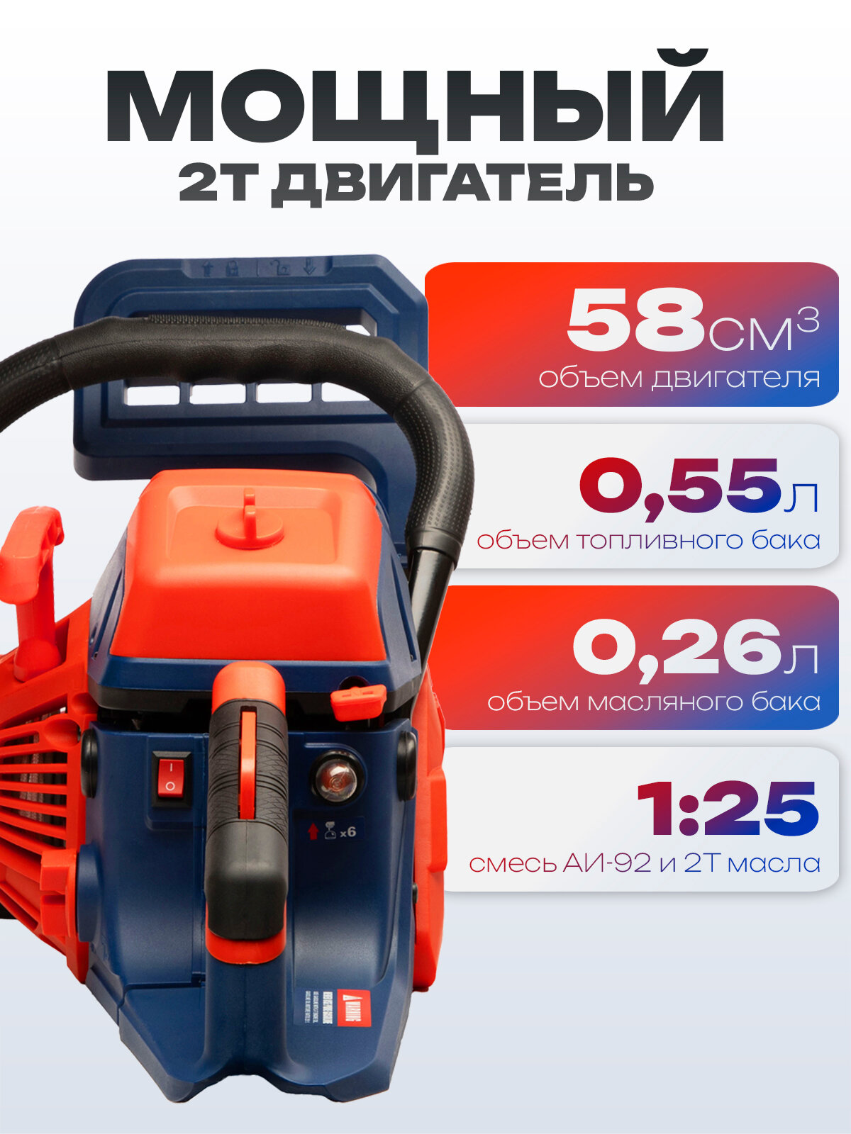 Купить Бензопила цепная JONSER BS-5800 шина 45 см, 5.8 кВт 10500 об/мин, пила бензиновая по дереву, для дачи и сада, заготовки дров с доставкой по всей России.