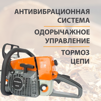 - Легкий запуск двигателя : Благодаря декомпрессионному клапану и системе зажигания CDI, запуск бензопилы становится простым и быстрым.