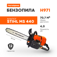 Садовый инструмент имеет продуманную конструкцию, пила для сада 971H является аналогом бренда STIHL модели MS440 – высокое качество по более доступной цене. Легкий и быстрый запуск двигателя делает строительный инструмент еще более удобным в использовании. Садовая пила имеет длину реза 45 см. Бензопила профессиональная это хороший подарок мужу, отцу, брату, дедушке, мужской подарок на новый год, день рождения, 23 февраля. Гарантия на инструмент 1 год!