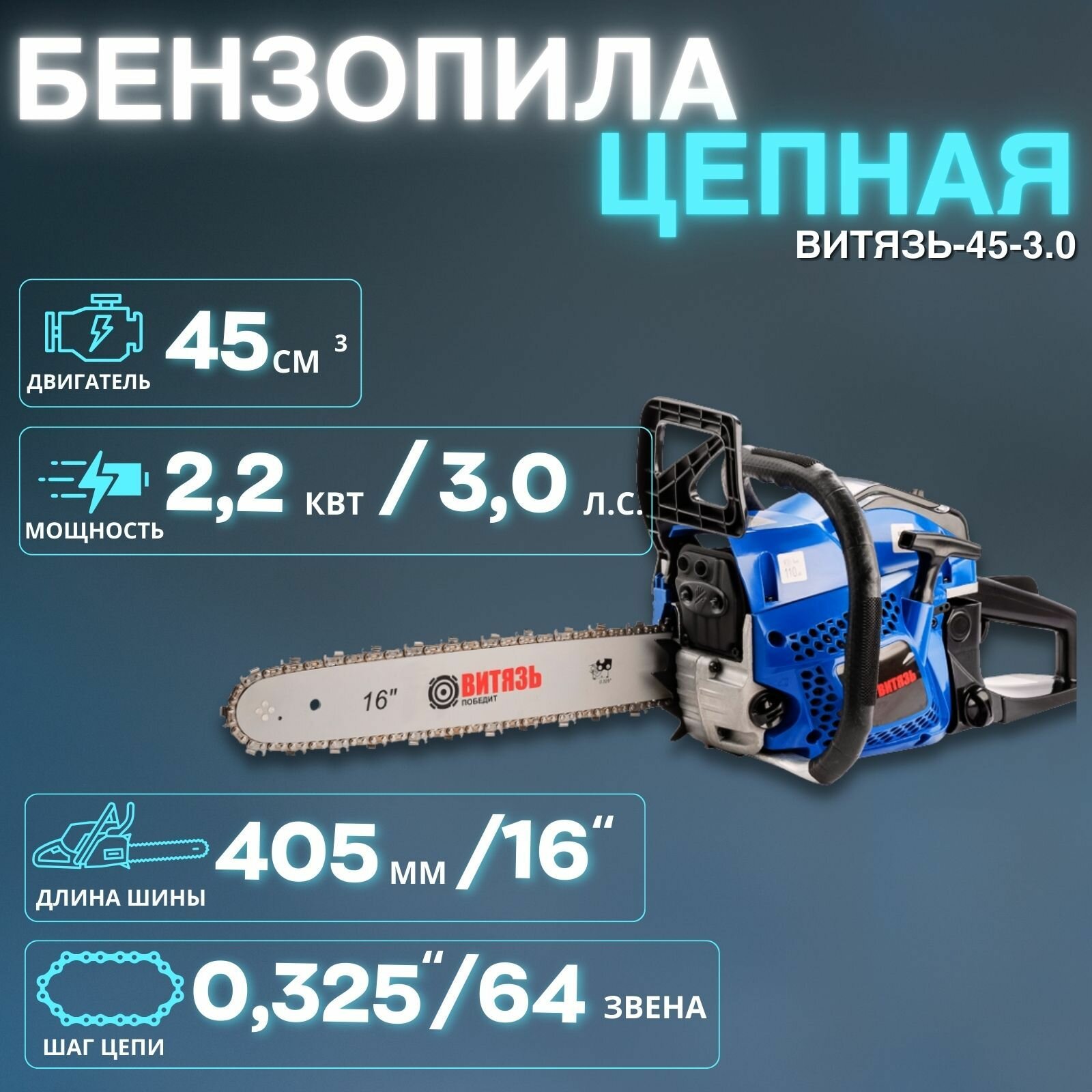 Купить Бензопила цепная Витязь БП-45-3,0 (2200 Вт, 3,0 л. с, 45 см. куб, шина 40,5 см / 16″) с доставкой по всей России. Бензопила цепная Витязь БП-45-3,0 (2200 Вт, 3,0 л. с, 45 см. куб, шина 40,5 см / 16″): сравнение цен, характеристики, фото, актуальное наличие и цены.