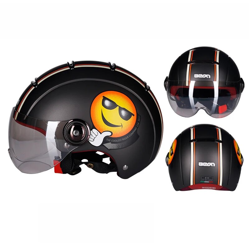 BEON для мужчин и женщин, летний винтажный мотоциклетный шлем на половину лица, ретро шлемы Casco B105 Черный, XL, Matte Black Smiling: сравнение цен, характеристики, фото, актуальное наличие и цены.