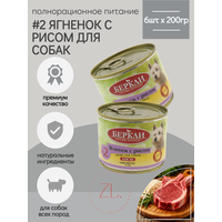 Беркли №2 консервы для собак Ягненок с рисом 200гр х 6шт