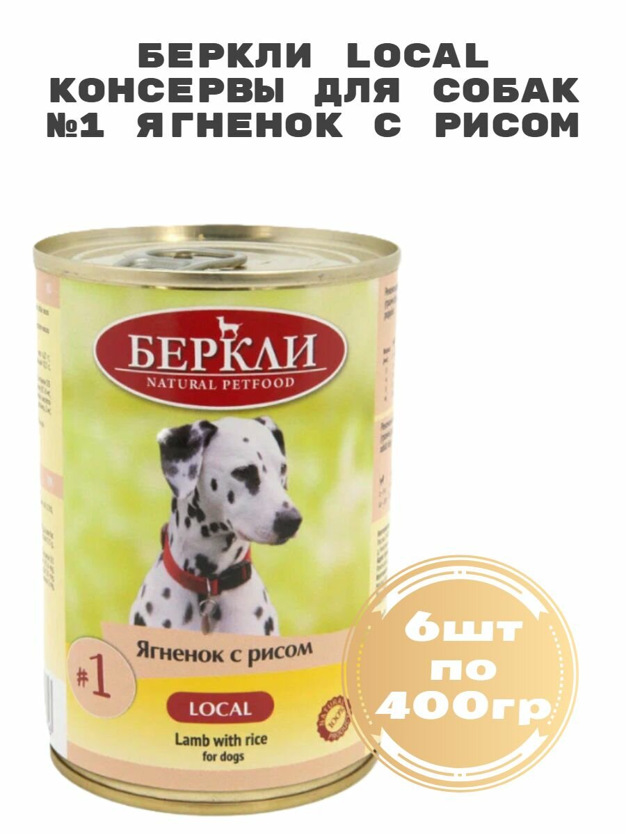 Купить Беркли 75541 Local консервы для собак №1 Ягненок с рисом 6штх400г с доставкой по всей России.