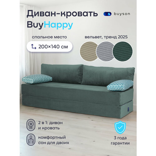 Купить Бескаркасный диван-кровать buyson BuyHappy, 200х70/141 см, вельвет, зеленый с доставкой по всей России.