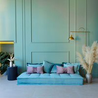 Купить Бескаркасный диван кровать для дома трансформер MIELLA Lora1Big, велюр светло-зеленый со светло-зелеными подушками с доставкой по всей России.