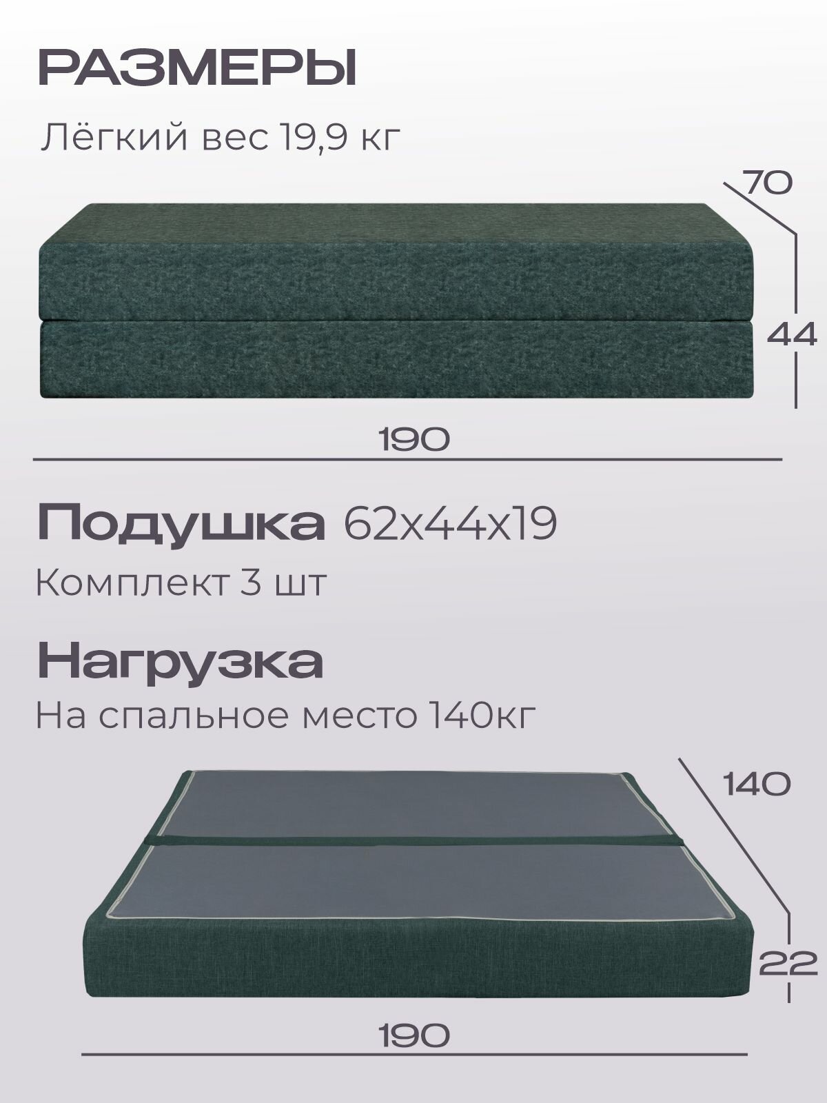 Бескаркасный диван раскладной Бруклин, прямой трансформер, съемный чехол, флок, изумрудный, 3 подушки, Ами мебель: сравнение цен, характеристики, фото, актуальное наличие и цены.