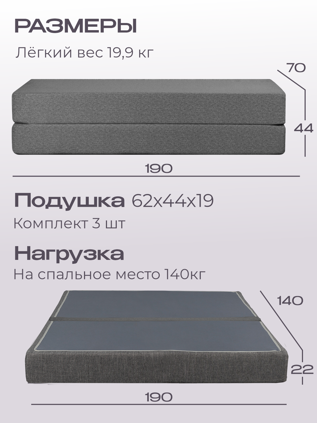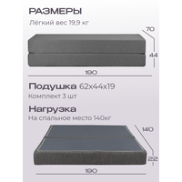 Бескаркасный диван раскладной Бруклин, прямой трансформер, съемный чехол, обивка флок темно-серый, 3 подушки, Ами Мебель: сравнение цен, характеристики, фото, актуальное наличие и цены.
