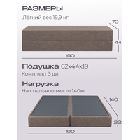 Купить Бескаркасный диван раскладной двухместный прямой Бруклин книжка съемный чехол рогожка св-коричневый 3 подушки Ами Мебель с доставкой по всей России.