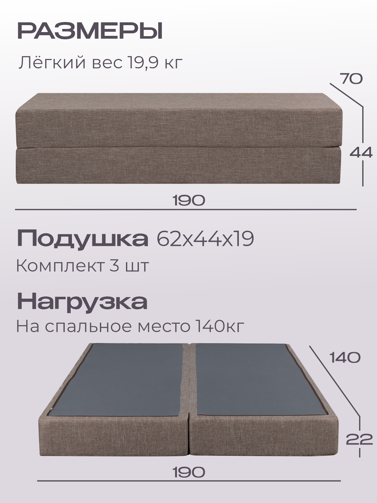 Бескаркасный диван раскладной двухместный прямой Бруклин книжка съемный чехол рогожка св-коричневый 3 подушки Ами Мебель: сравнение цен, характеристики, фото, актуальное наличие и цены.