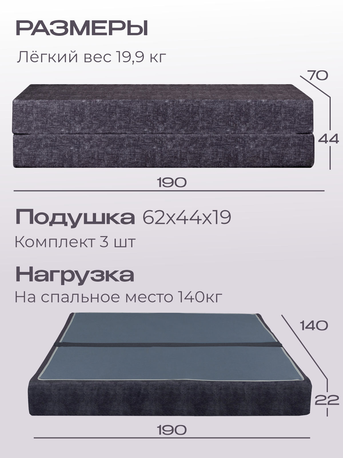 Бескаркасный диван раскладной двухместный прямой Бруклин, книжка, съемный чехол шенилл темно-серый, 3 подушки Ами Мебель: сравнение цен, характеристики, фото, актуальное наличие и цены.