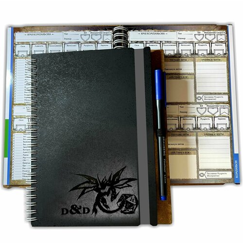 Черный Блокнот с гравировкой Дракон ДнД. Бесконечный Тактический Блокнот Персонажа (Мастера) для настольной ролевой игры DnD 5е. Используется как листы персонажа Dungeons & Dragons.