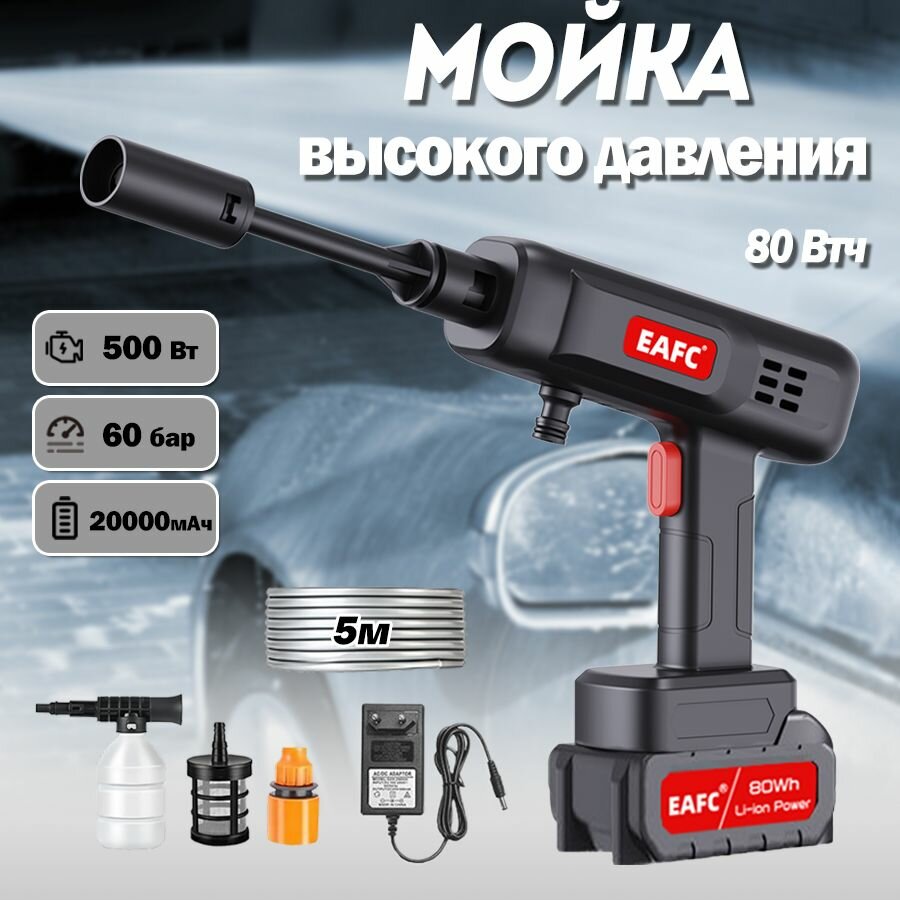 Беспроводная автомойка аккумуляторная высокого давления SQ02, Регулируемая насадка, 20000 мАч, 80 Втч: сравнение цен, характеристики, фото, актуальное наличие и цены.