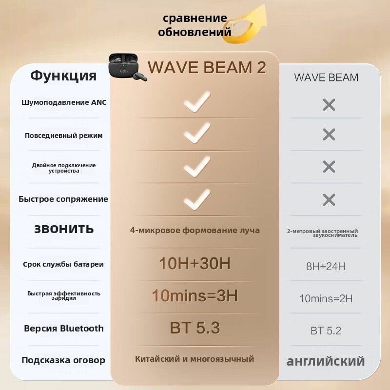 Беспроводные наушники JBL Wave Beam 2 с микрофоном обеспечивают высококачественное звучание и комфорт в использовании. Эти внутриканальные наушники с активным шумоподавлением и поддержкой Bluetooth идеально подходят для спортивных занятий и повседневного использования. Оригинальные JBL наушники оснащены USB Type-C для быстрой зарядки и длительной работы. Наушники JBL гарантируют надежное соединение и чистый звук, делая их идеальным выбором для меломанов.