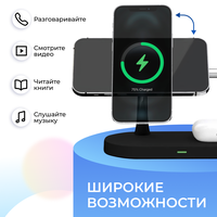 Беспроводная зарядка для телефона стала неотъемлемой частью современной жизни. Наша беспроводная док-станция 5 в 1 МагСейф — это универсальное решение для тех, кто ценит удобство и функциональность. Совместимость с MagSafe обеспечивает быструю зарядку и надежную фиксацию смартфона.