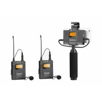 Беспроводная двухканальная радиосистема УВЧ Saramonic UwMic9 Kit13 (TX9+TX9+SPRX9) с 2 поясными передатчиками и 1 приемником с держателем смартфона для iPhone и Android