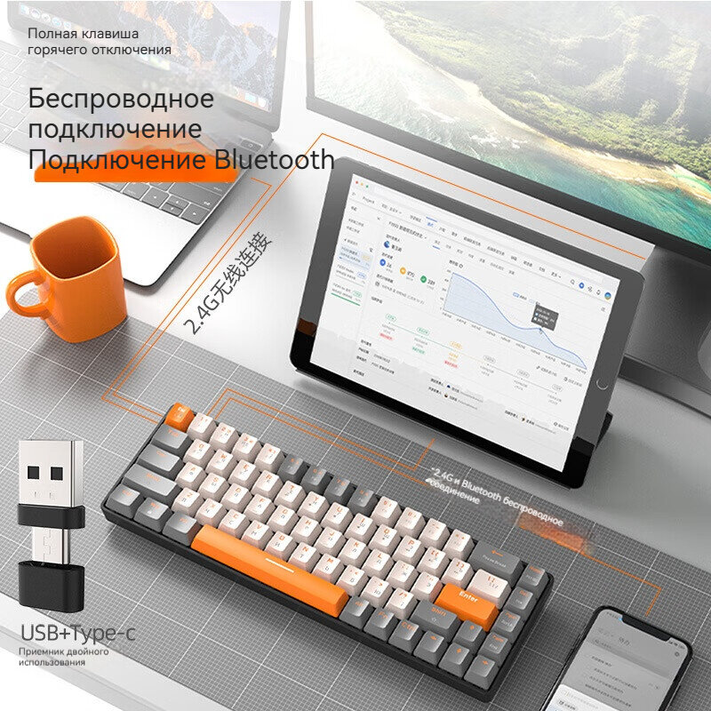 Беспроводная двухрежимная русская клавиатура Liberty Wolf K68 Bluetooth, красная ось, бежевый: сравнение цен, характеристики, фото, актуальное наличие и цены.