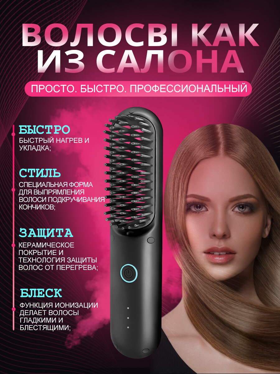 Расческа-выпрямитель для волос ROS FRUKT- это многофункциональное устройство, которое сочетает в себе Беспроводной выпрямитель для волос – свобода и стиль в одном устройстве. Подарки на новый год.