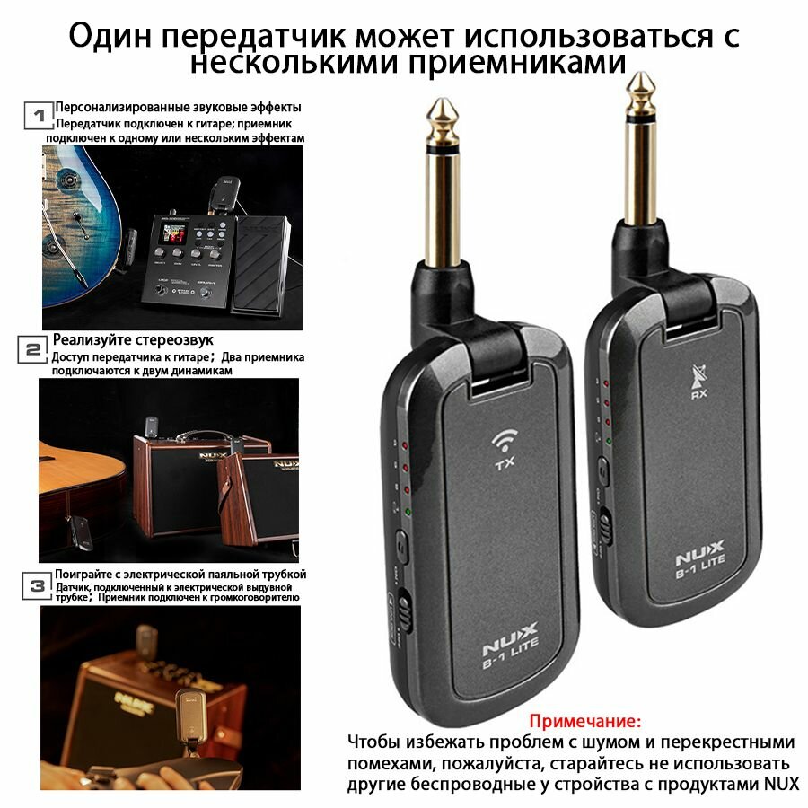 Беспроводная гитарная система NUX B-1 Lite 2.4 ГГц, менее 5 мс задержки, анти WiFi помехи, перезаряжаемый беспроводной гитарный приемник-передатчик e: сравнение цен, характеристики, фото, актуальное наличие и цены.