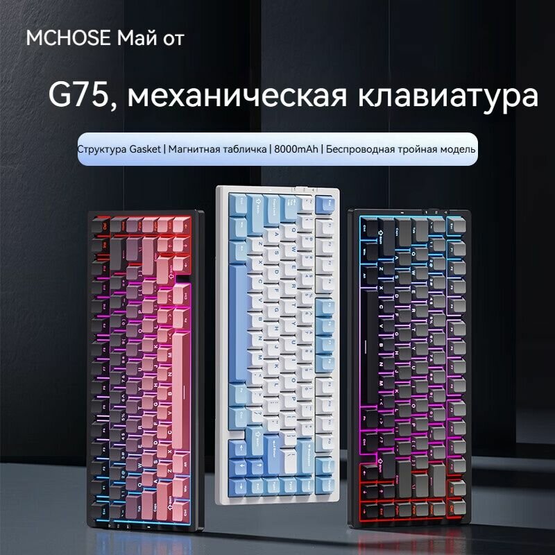 Купить MCHOSE G75 PRO беспроводная механическая клавиатура русская раскладка Matcha Latte Switch V2 черное с доставкой по всей России.