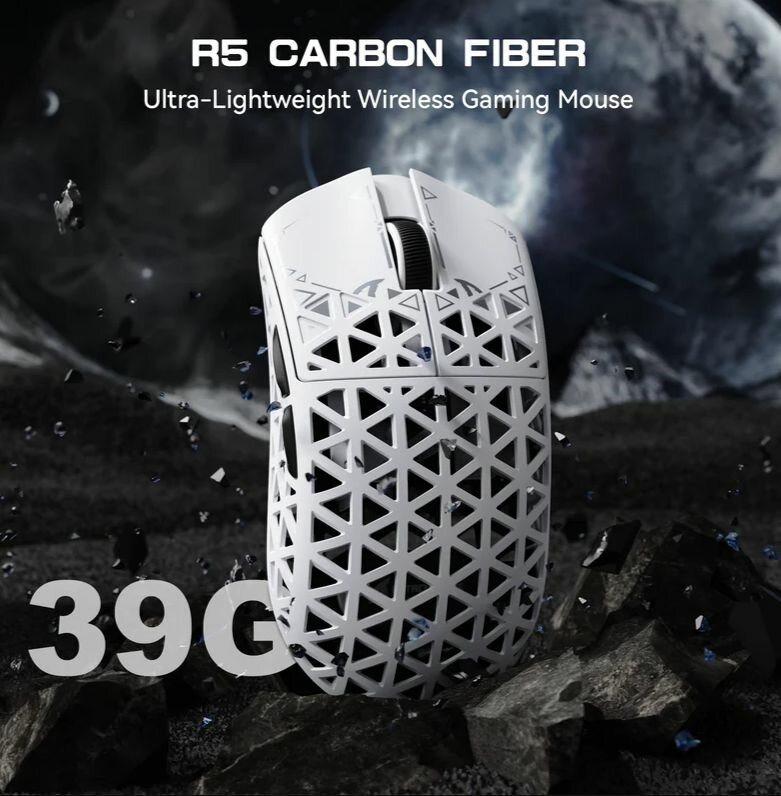 корпус из литого карбона Инновационный материал Carboweave сочетает карбоновое волокно и полимерную матрицу. Результат: Прочность в 1.8 раза выше алюминиевых сплавов Вес всего 39 г без ущерба для жёсткости Уникальная текстура поверхности для тактильного комфорта