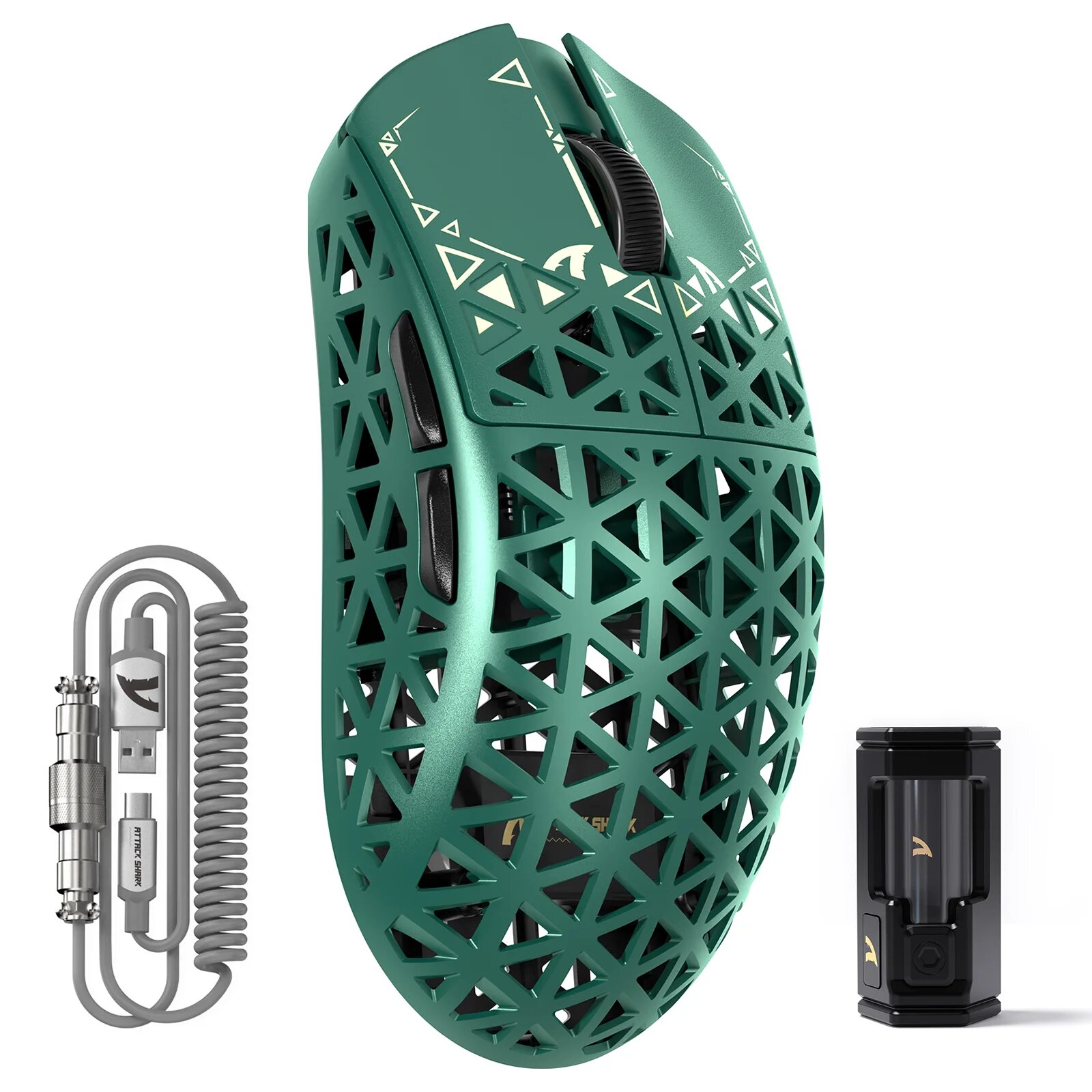 Беспроводная игровая мышь ATTACK SHARK R5Ultra из углеродного волокна 8K PAW3950MAX со спиральным кабелем 8K, Green: сравнение цен, характеристики, фото, актуальное наличие и цены.