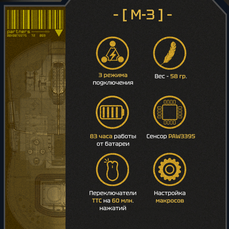 | Комплектация | Мышь, кабель USB Type-C, руководство пользователя |