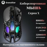 Беспроводная игровая мышь Gravastar Mercury X, 32000 DPI, PAW3950 750IPS, RGB-подсветка, матовый черный