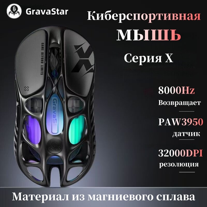 Беспроводная игровая мышь Gravastar Mercury X, 32000 DPI, PAW3950 750IPS, RGB-подсветка, матовый черный: сравнение цен, характеристики, фото, актуальное наличие и цены.