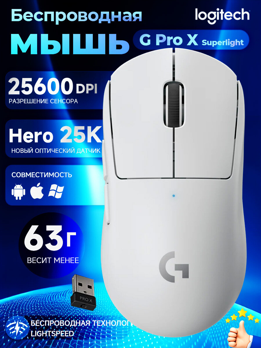 Беспроводная игровая мышь Logitech G Pro X Superlight, белый: сравнение цен, характеристики, фото, актуальное наличие и цены.