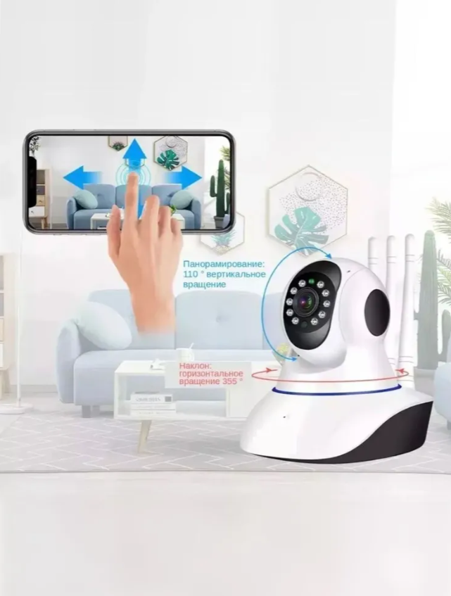 Может вращаться – автоматически, в том числе отслеживая движущийся объект или просто водите пальцем по экрану дисплея и камера будет поворачиваться . Вращение по горизонтали 355°, по вертикали 110°.