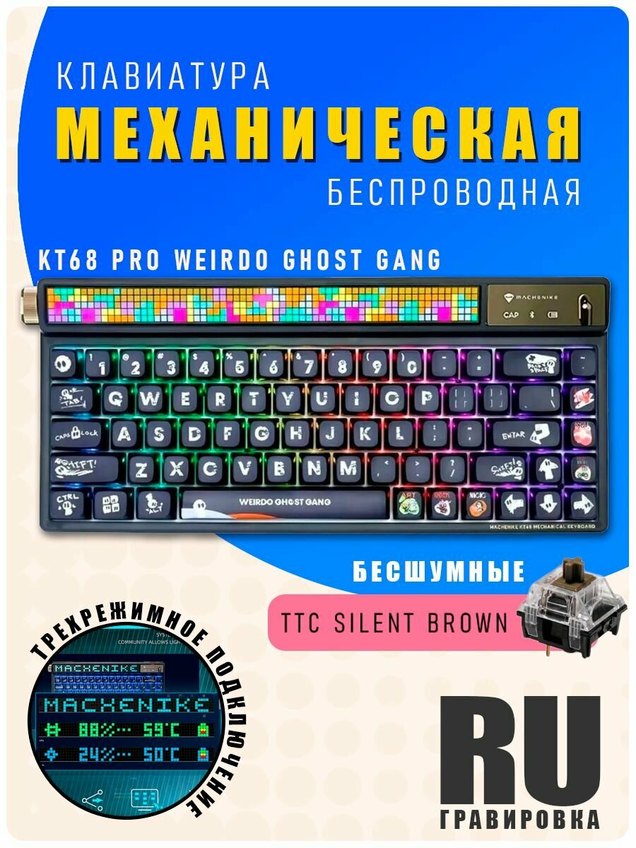 Беспроводная клавиатура игровая KT68 PRO механическая / С дисплеем / Подключение: 2.4G, BLUETOOTH, TYPE-C. Русская-Английская раскладка: сравнение цен, характеристики, фото, актуальное наличие и цены.