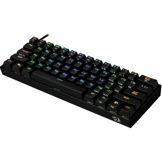 Игровая беспроводная клавиатура Redragon Draconic RU, RGB, bluetooth 5.0, Black: Компактная игровая клавиатура с коричневыми механическими переключателями повышенной износостойкости, программируемой RGB-подсветкой и дополнительными игровыми функциями! Беспроводная конструкция и укороченный корпус для экономии места на вашем столе. Аппаратная блокировка клавиши WIN во время игры. Программируемая RGB подсветка. Технология Hot Swap. Влагоустойчивая конструкция клавиатуры. Позолоченный USB-коннектор. Распознает одновременное нажатие 61 клавиш. Подсветка символов и клавиш. Совместимость с Windows 2000/XP/Vista/7/8/10/11.