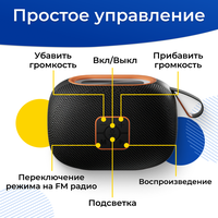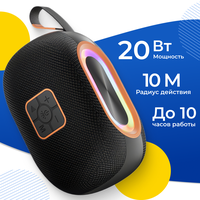Колонка с поддержкой Bluetooth, чувствительность 92 дБ, максимальная мощность 20 Вт, диапазон воспроизводимых частот от 45 Гц до 50 000 Гц. Оснащена микрофоном, имеет подсветку. Есть разъём для подключения к источнику звука по кабелю 3,5 мм, слот для карты памяти, разъём USB Micro для зарядки, а также порты USB Type-C и USB для подключения к компьютеру или другим устройствам. Колонка поддерживает Bluetooth 5.2, FM-радио и диапазон частот от 80 Гц до 20 кГц. Эффективное расстояние передачи сигнала составляет 10 м. Время зарядки аккумулятора — 4 часа. Ёмкость аккумулятора — 4500 мАч. Колонка оснащена RGB-подсветкой и имеет водонепроницаемый корпус. Мощность — 20 Вт. Время работы без подзарядки — до 10 часов.