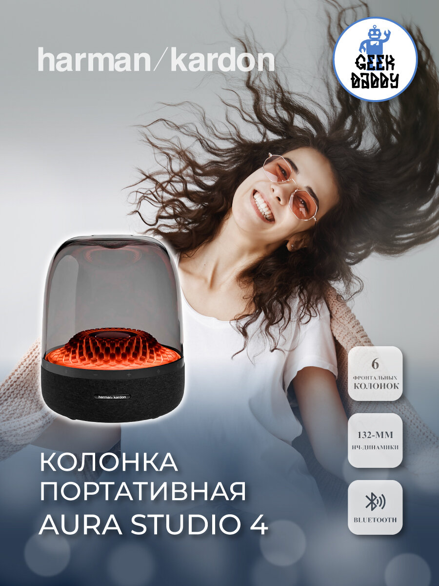 Купить Портативная колонка Harman/Kardon Aura Studio 4, 132 мм НЧ, LED-подсветка, черный с доставкой по всей России.