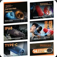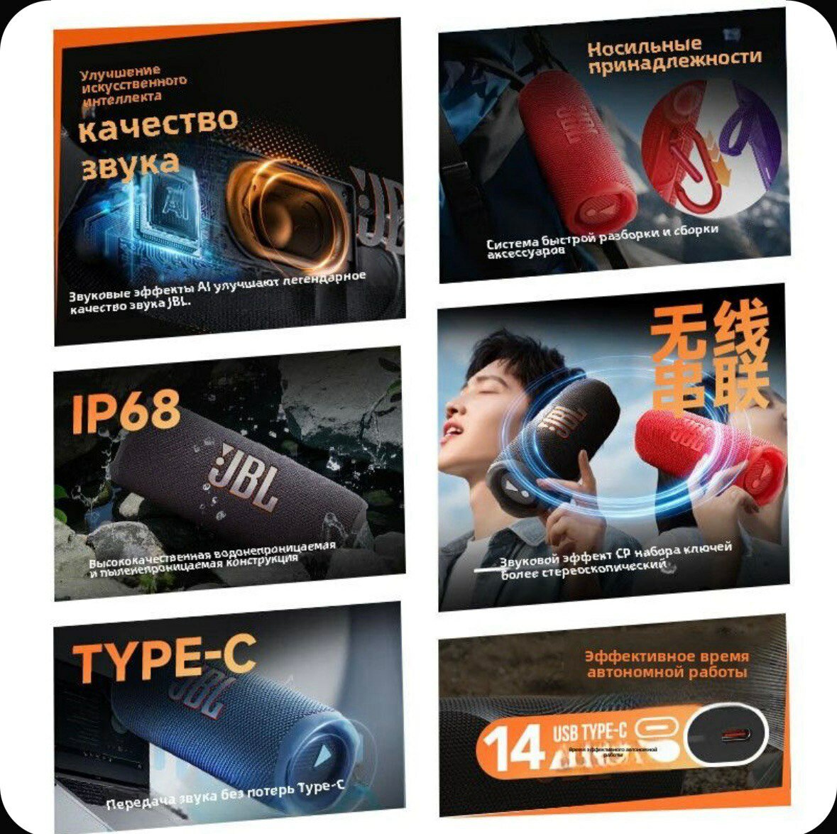 | Дополнительная информация | технология «AI Sound Boost», функция «Playtime Boost», Lossless Audio (поддерживает проводной режим воспроизведения звука), система «PushLock» для быстрой смены ремешок/карабин, мобильное приложение JBL Portable |